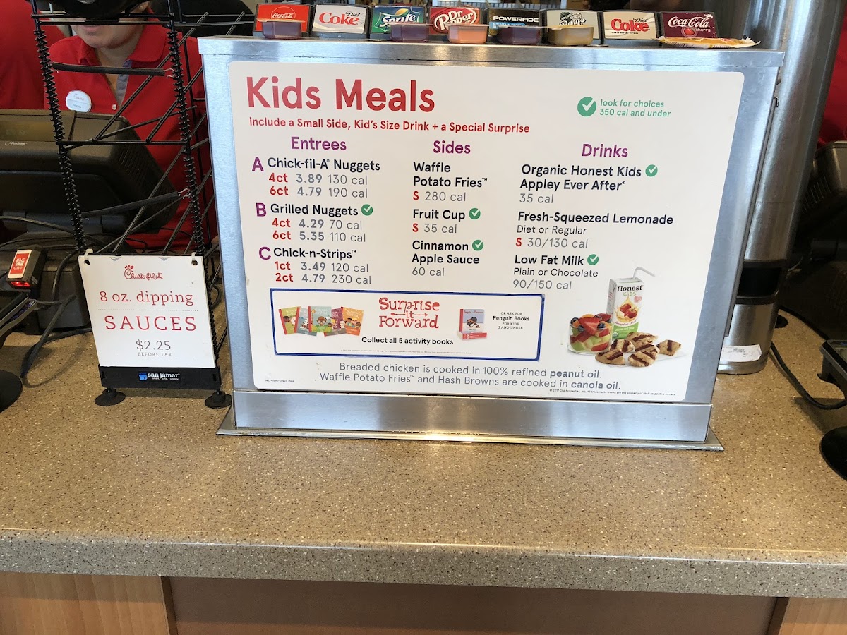 Salad lovers will enjoy hearty options like the Cobb Salad, brimming with freshly breaded nuggets, roasted corn, cheeses, bacon, and egg, and the Spicy Southwest Salad, highlighting grilled spicy chicken and fresh vegetables. Families appreciate the well-rounded Kid’s Meals, offering nuggets or ChicknStrips™ served with a choice of sides and drinks, making it a perfect meal for little ones.